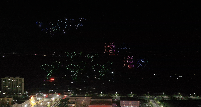 8月15日,值此日本宣布无条件投降80周年之际 ,为纪念中国人民抗日战争暨世界反法西斯战争胜利 80 周年,恰逢吉林省通友汇天智能技术有限公司落户通榆并实现产品下线,由该公司主办的 “通友汇天” 无人机首飞活动盛大启幕。活动以“智汇低空,首飞领航”为主题,数百架无人机编队与绚丽烟火秀交相辉映,既为全县人民献上了一场沉浸式视听盛宴,也向社会展示了我县在无人机技术应用领域的阶段性成果。夜幕中,数百架无人机化身“空中像素”,在天幕上编织出流动的光影长卷。我县行政地图轮廓率先亮起,绿色光点勾勒出湿地、草原与农田的生态脉络;转瞬之间,丹顶鹤振翅掠过“向海湿地”,水墨剪影生动逼真;涌动的湖泊里,光点组成的鱼群仿佛在“水韵鹤乡”的夜色中游弋,植保无人机与智慧农田图案联动,勾勒出现代农业的金色脉络,光影流转间,科技与发展的图景渐次铺展。最终,所有元素交融成活力澎湃的未来图景,点燃全场热情。当高空中的无人机编队正在热闹表演,地上的烟花按捺不住,伴随着响亮的声音腾空而起,在夜空中尽情舞动,或如繁花似锦,或似流星划过,与无人机编队的光影效果交相辉映,瞬间点亮了通榆的夜空,引得现场观众阵阵欢呼,将活动的热烈气氛推向高潮。?据了解,本次首飞活动于8月15日至16日每晚8点上演。这场科技盛宴充分彰显了无人机技术的发展成果与广阔应用潜力,将进一步推动无人机项目与本地产业链的深度对接,为通榆县培育新质生产力、促进经济社会高质量发展持续注入强劲动能。