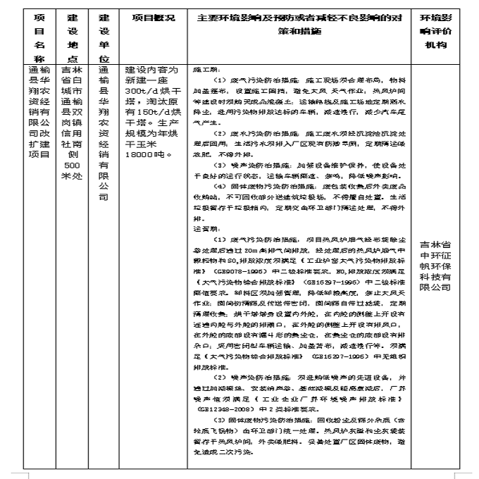 (拟审批公示)通榆县华翔农资经销有限公司改扩建项目