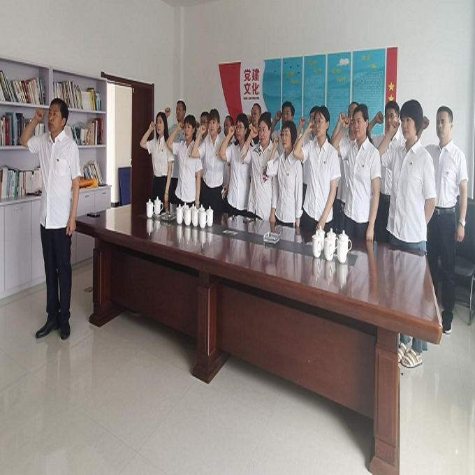 为迎接“七一”建党100周年,县生态环境分局党支部在党员活动室开展“重温入党誓言、坚定理想信念”主题党日活动。活动中,面对鲜红的党旗,支部书记作为领誓人,带领支部新老党员同志一起高举右手,再次庄严宣誓。我志愿加入中国共产党……随时准备为党和人民牺牲一切,永不叛党。”铿锵恢宏的誓词,强烈震撼着在场的每一位党员,一字一句,神圣而豪迈,体现了党员同志们对中国共产党的无限忠诚。
