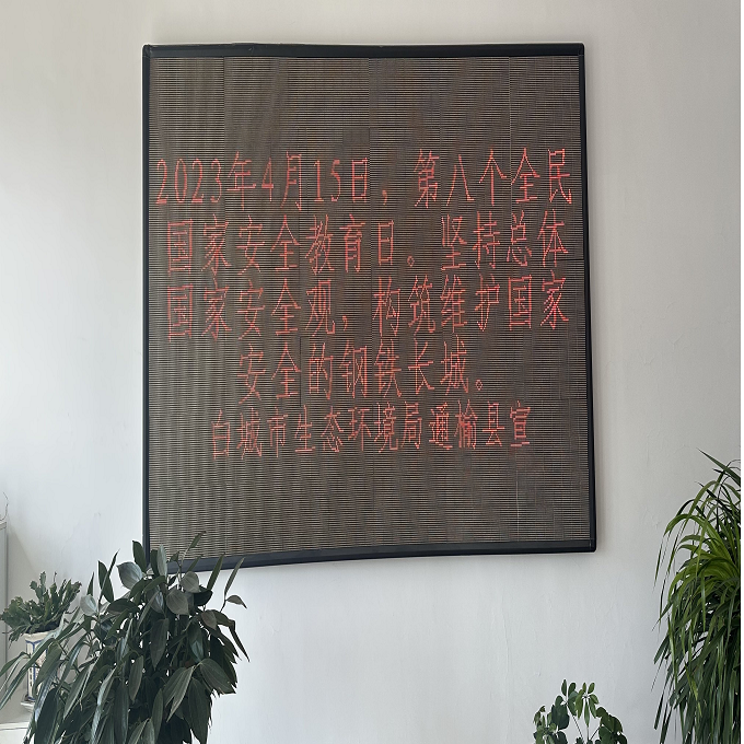 2023年4月15日是第八个“全民国家安全教育日”,白城市生态环境局通榆县分局积极开展了“全民国家安全教育日”宣传活动,通过理论学习、普法学习、悬挂宣传条幅,电子屏幕滚动播出宣传标语等形式,进一步增强了广大干部职工的国家安全意识。