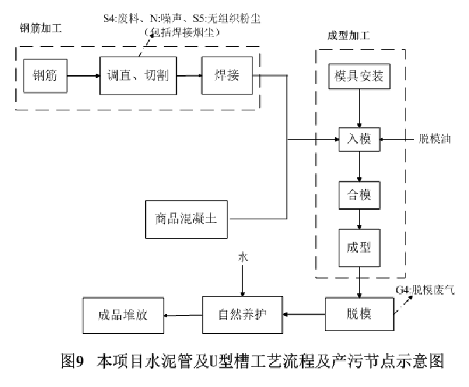 水泥管和U型槽生产过程是将配制好的混凝土送入模具内,待成型后的产品脱模后加水养护,检验后出厂销售。