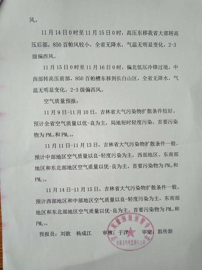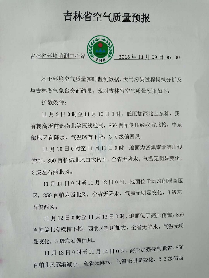 吉林省空气质量预报