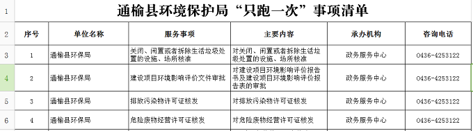 通榆县环境保护局“只跑一次”事项清单
