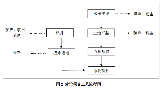 本项目工程建设过程主要为农田挖渠、土地平整、农田改良、农作物种植。项目施工期以机械设备为主,施工人员较少,施工期间施工人员租赁在附近居民家,不建设临时施工营地。项目建成投运后,管理人员租赁附近民房进行值班管理,现场不设置永久性建筑。