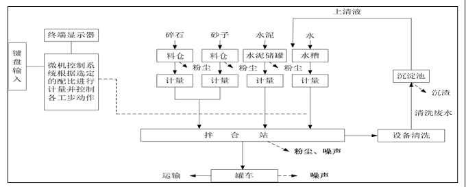 项目生产流程为混凝土搅拌过程,生产工艺相对比较简单,所有工艺均为物理过程。