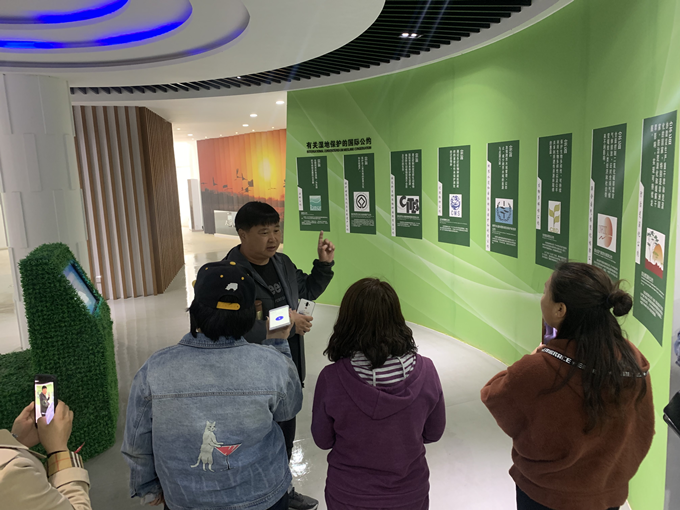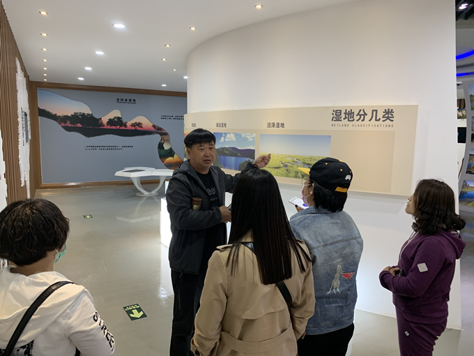 通过与保护局协调,保护局派遣科研处骨干刘蕾同志为参与教研活动教师的进行讲解。教师团跟随刘蕾先后前往仙鹤岛、览海阁、百鸟园及湿地宣教中心。保护局副局长李宝庆亲自带领向海教师们实地了解湿地宣教中心,并详细讲解。