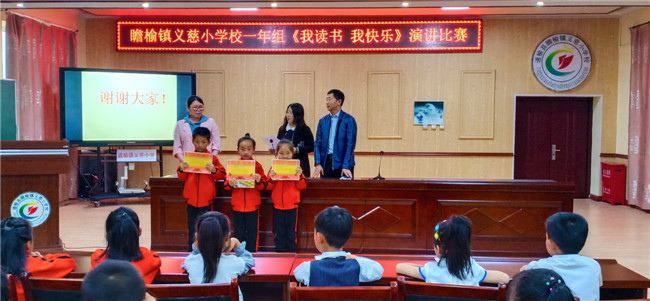 瞻榆镇义慈小学校一年组热烈开展“我读书 我快乐”演讲比赛活动