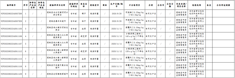 (声明:以下信息仅指本次抽检标称的生产企业相关产品的生产日期/批号和所检项目)