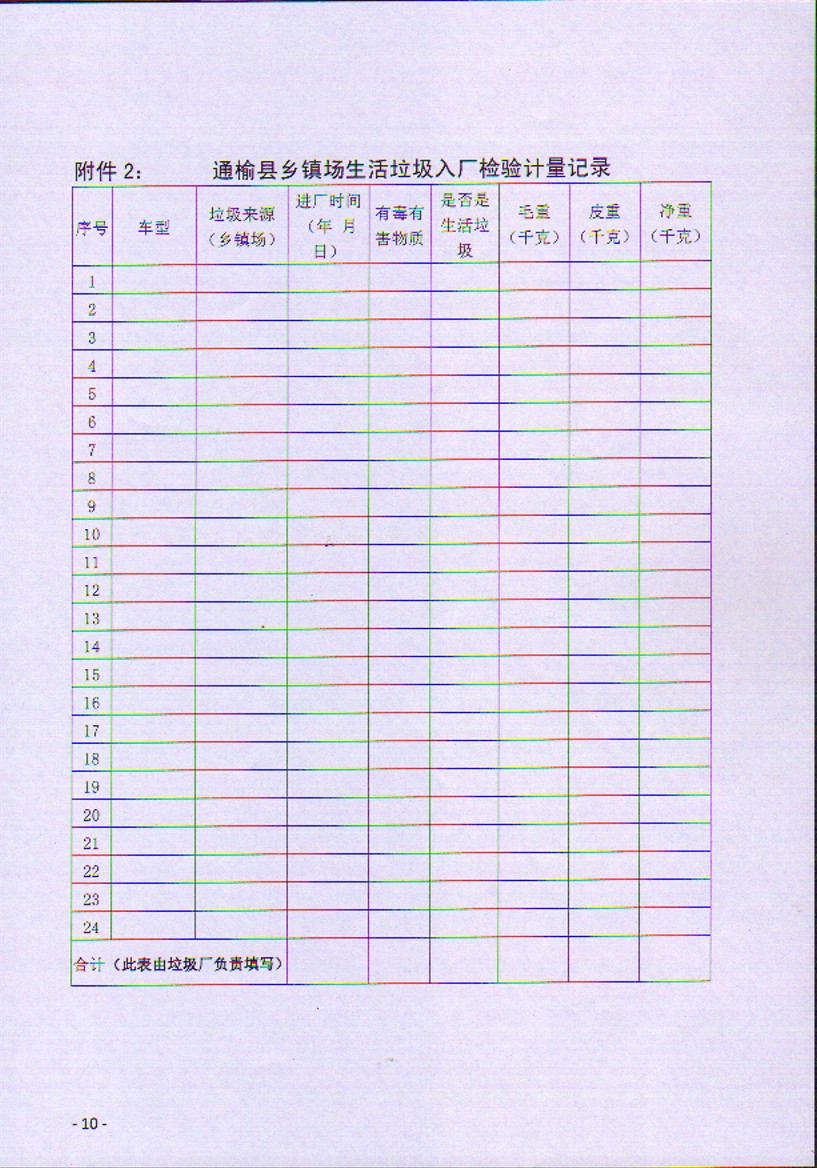 2.通榆县乡镇场生活垃圾入厂检验计量记录