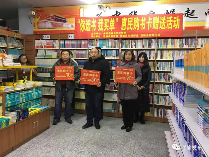 12月30日,由通榆县委宣传部主办,通榆县教育局、通榆县树满街道承办的“你选书 我买单”惠民购书卡赠送活动,在新华书店举行。