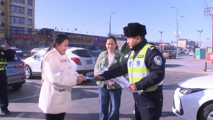 开通社区联合县公安局交巡警大队开展交通安全宣传活动