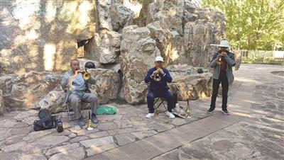 跳广场舞时的热闹,共同演奏乐器时的默契,各个碑石前面的注视与沉思,构成了墨宝园这一个个美好的画面。