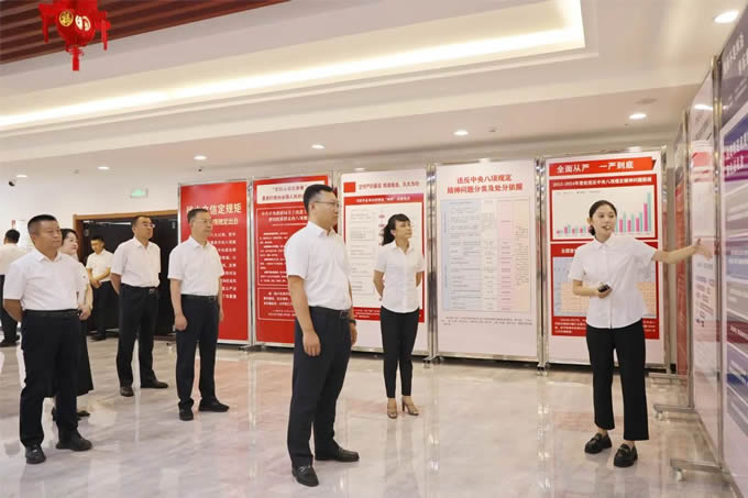 为推动深入贯彻中央八项规定精神学习教育走深走实,进一步深化全县以案促改、以案促治工作,全面增强领导干部廉洁自律意识,筑牢拒腐防变思想防线,持续营造风清气正的政治生态。8月4日,市委常委、县委书记王海刚,县人大常委会党组书记、主任沈玲,县委副书记、县长金锐,县政协党组书记、主席邓利辉及全县在职副县级领导在县图书馆四楼集体参观了“作风建设永远在路上——锲而不舍落实中央八项规定精神”警示教育展览。