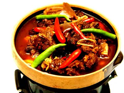 狗肉属温性,冬春两季,气候寒凉,吃红烧狗肉。有益气、补肾、理脾、暖腰膝、壮气力等功效。对老人体质虚寒、腰膝酸痛、小儿遗尿有明显疗效。
