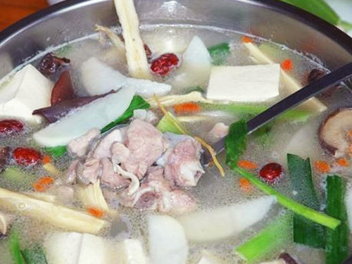只要你根据自己的喜好,适量加一点香菜、蒜泥、辣椒、盐等,便可开吃啦!羊肉汤的的特点是:"色泽光亮,呈乳白色;汤质优美,营养丰富;不膻不腥,味道鲜美异常。羊肉汤品种繁多,各有特色,除饱口福外,还有健脑明目之功效,尤其适合老年人和神经衰弱者饮用。