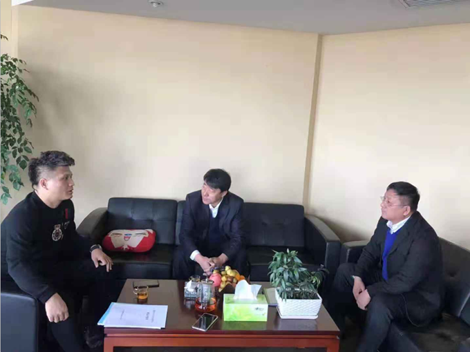 图为:谢复强副县长与李凤军总经理进行洽谈