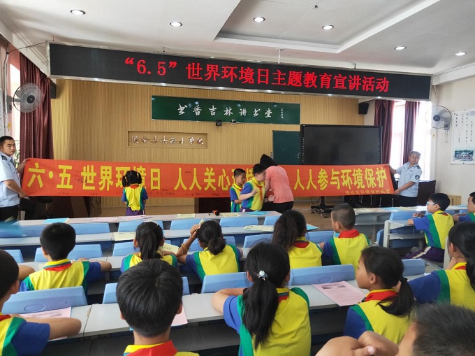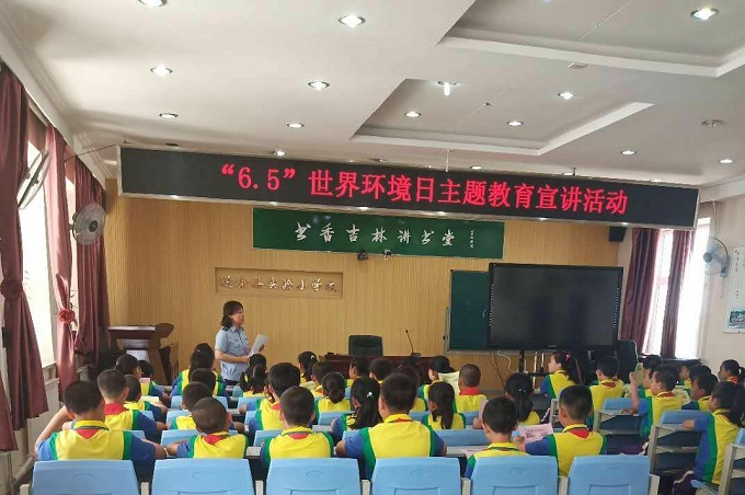活动中,通榆县环境保护局重点围绕生态文明建设、环保政策、环保常识等方面进行宣传,引导师生履行绿色生活公约,普及环保常识,让他们了解世界环境日的由来,学习环境文化、环境道德等环保知识。小学生代表还宣读了2019世界环境日倡议书,并集体庄严宣誓。倡议师生牢固树立保护环境从我做起,从身边小事做起的思想,积极践行节约用水、节约用电、珍惜纸张、爱护花草树木、垃圾分类投放等勤俭节约、绿色低碳、文明健康的生活方式,并带动家人、朋友主动爱护环境,营造人人关心环保、支持环保、参与环保的浓厚社会氛围,携手共建美丽通榆。
