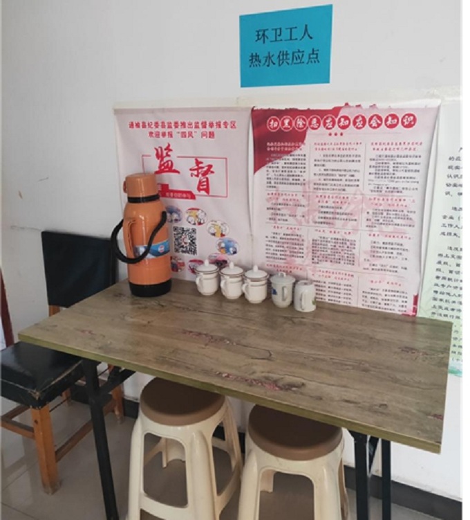地址:通榆县生态大街与敬业路交汇处1888号虽然寒冬大雪,却挡不住爱心温暖,通榆县环境保护局在全局发起“献爱心”捐赠活动。倡议为环卫工人“爱心早餐”组织捐款,全局召开大会,局长亲自带头捐款,41人共捐款8228.30元,让我们关心环卫工人,共同保护通榆的环境。在环保局一楼大厅设立了环卫工人热水供应点,用我们环保人的一份爱心,留下一份真情,传递一份正能量。
