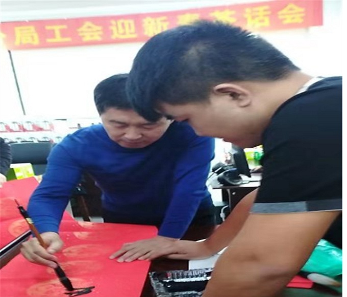 第三个小高潮是局领导班子才艺表演,刘局长高歌一曲,王局长现场书写对联、福字,寻宝活动、现场抽奖,大家吃着喝着玩着欢声笑语其乐融融,互相祝福,提前拜年,和谐而美好。