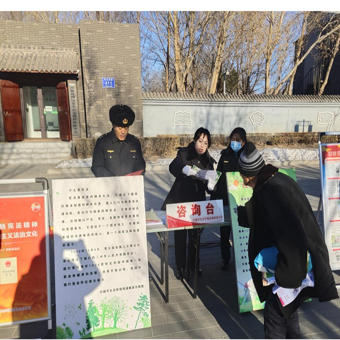 今年是第十个国家宪法日和第六个宪法宣传周。2023年12月1日至8日,白城市生态环境局通榆县分局开展了“宪法宣传周 宪法进机关”系列活动。