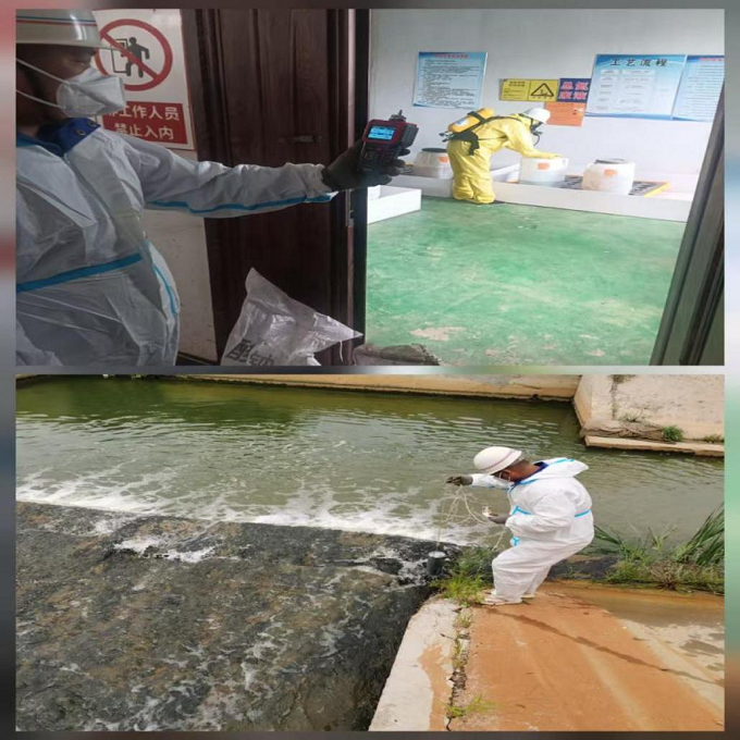 图为对环境空气、外排水体应急监测照片