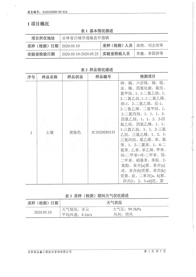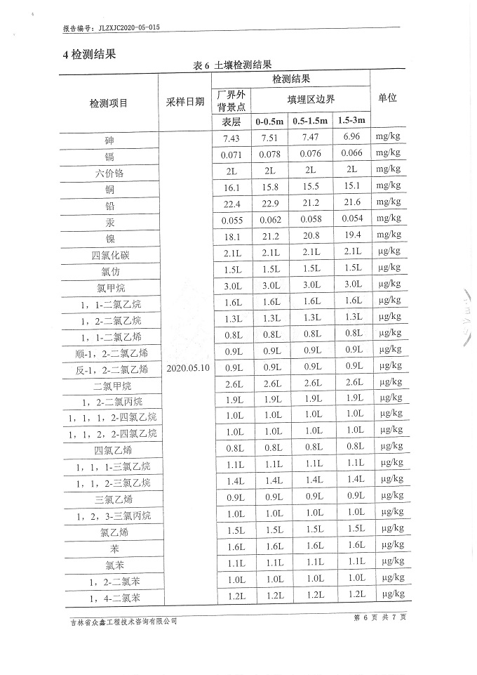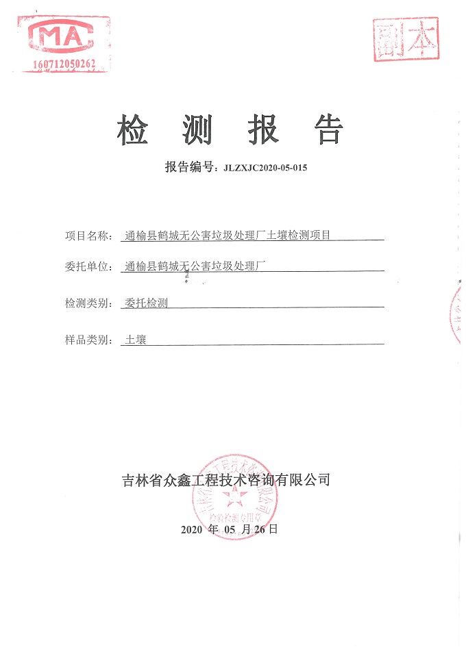 通榆县鹤城无公害垃圾处理厂土壤检测项目