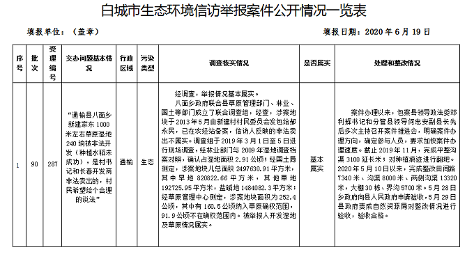 白城市生态环境信访举报案件公开...