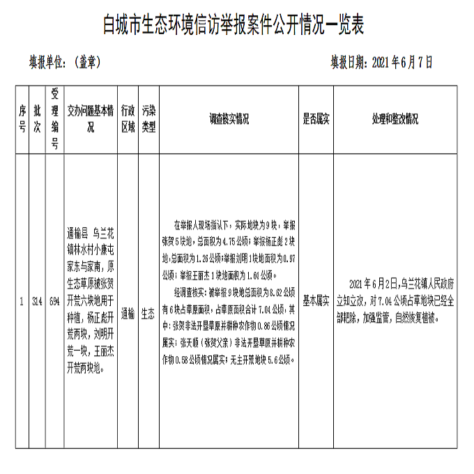 白城市生态环境信访举报案件公开...