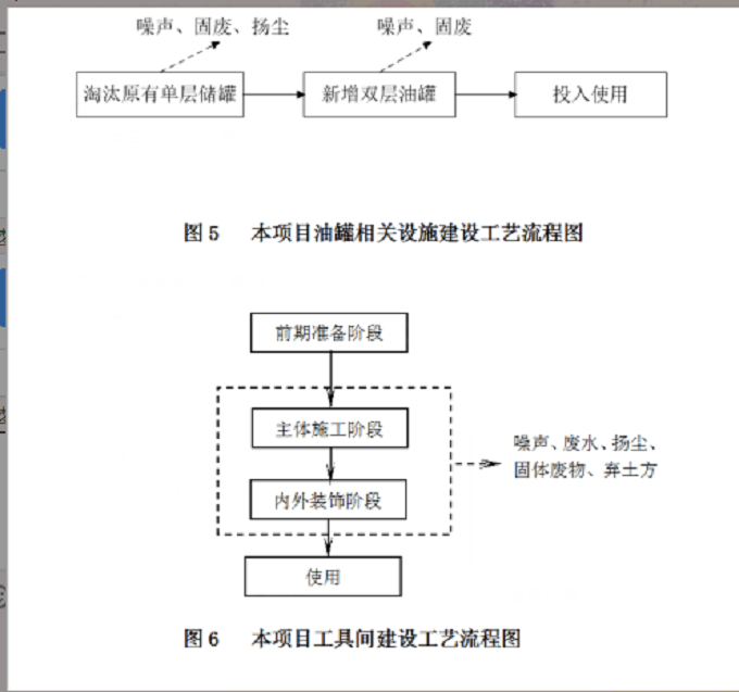工艺流程简述 本项目工艺流程主要为施工期操作,本项目对原有2个30m3单层铁质储罐(汽油储罐)和2个50m3单层铁质储罐(柴油油储罐)进行淘汰,新增2个30m3双层SF储罐(汽油储罐)和2个50m3双层SF储罐(柴油储罐);此外本项目新建一个面积为10m2的工具间,用于储存杂物工具。本项目工艺流程图详见下图5、图6。