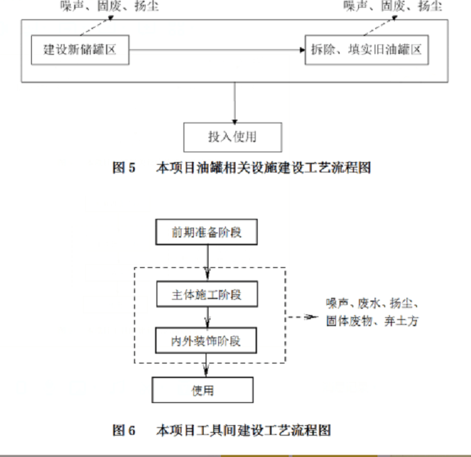 工艺流程简述 本项目工艺流程主要为施工期操作,由于本站原有储罐区位置影响过往加油车辆通行且未进行防渗处理,故本项目在厂区东侧新建一个防渗储罐区,新储罐区规格与原储罐区规模相同(占地135m2,深度为1.6m,地面永久围堰高度为0.25m);本项目对原有储罐区地下及围堰进行拆除,取出油罐,并对原有储罐区地下部分进行填实和硬化处理;此外本项目新建一个工具间,用于储存杂物工具。本项目工艺流程图详见下图5、图6。 |
