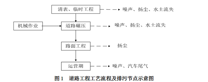 图1 道路工程工艺流程及排污节点示意图