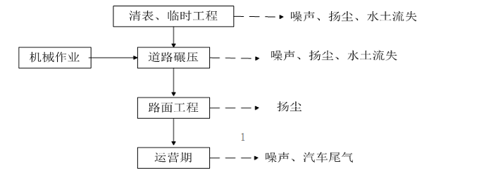 本项目主要是道路工程442.535m,双向两车道。采用沥青混凝土路面,其主要工艺流程和产、排污环节如下: