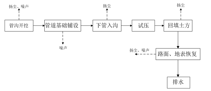 图2 管道工程工艺流程及排污节点示意图