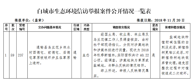 白城市生态环境信访举报案件公开...