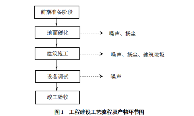 工艺流程简述 1.施工期工艺流程及产物环节 本项目工程建设过程主要为前期准备阶段、地面硬化、建筑施工、设备调试及建成运行等,主要建设工艺流程及产污环节见图1。