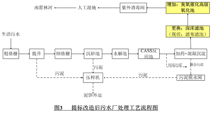 ①将通榆县鹤翔污水处理厂进行提标改造(提标改造为单独工程,单独做环评),将污水厂出水由《城镇污水处理厂污染物排放标准》(GB18918-2002)表1中一级A标准提升达到《地表水环境质量标准》(GB3838-2002)中Ⅳ类标准要求,提标改造方案如下: