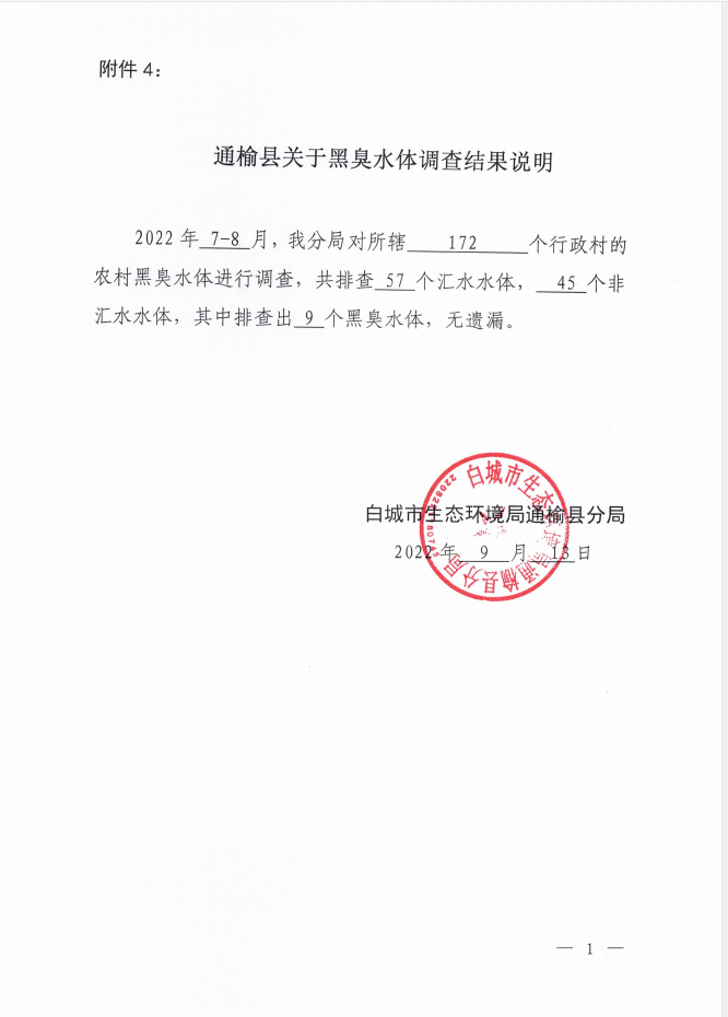 通榆县关于黑臭水体调查结果说明