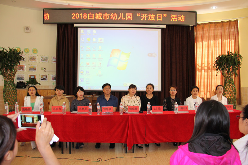 5月22日,白城市幼儿园“开放日”活动在通榆县开发区幼儿园开展,白城市教育学院教研主任张成云、市教育局基础教育科负责学前教育工作的刘艳同志、通榆县教育局刁恩波副局长、全市各县(市、区)教育局幼教科科长(学前工作负责人)、进修学校副校长、幼教部主任和教研员以及各自选派的5名园长、5名教学副园长,市实验幼儿园园长、教学副园长,以及通榆县有资质的65所公办、民办幼儿园园长(副园长)共110余人参加了活动。