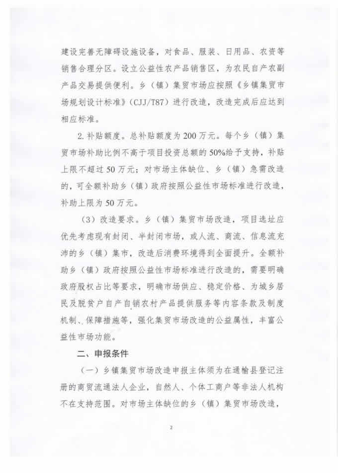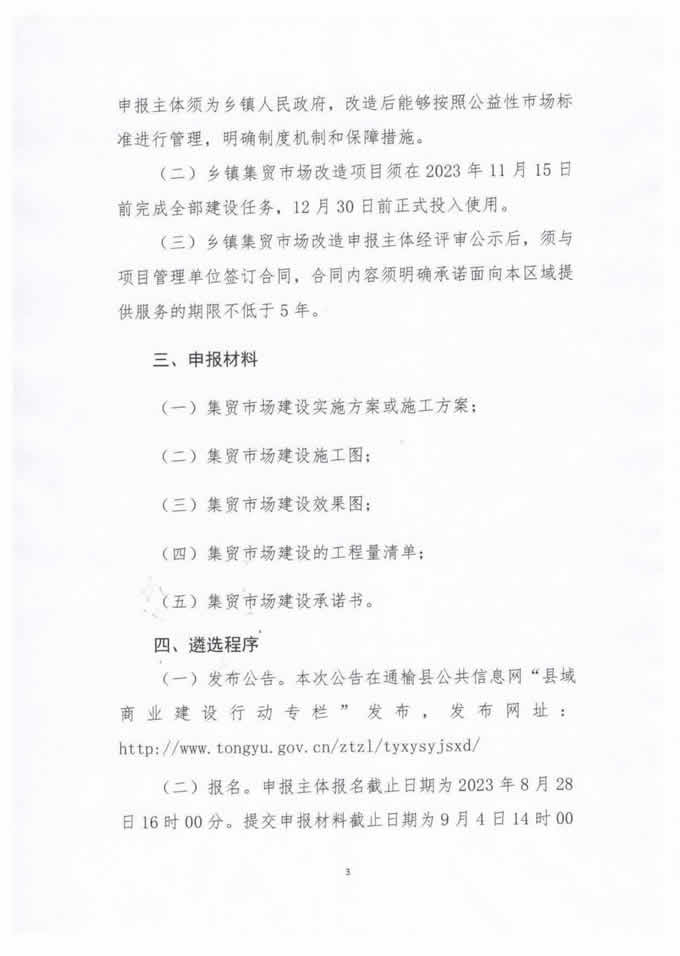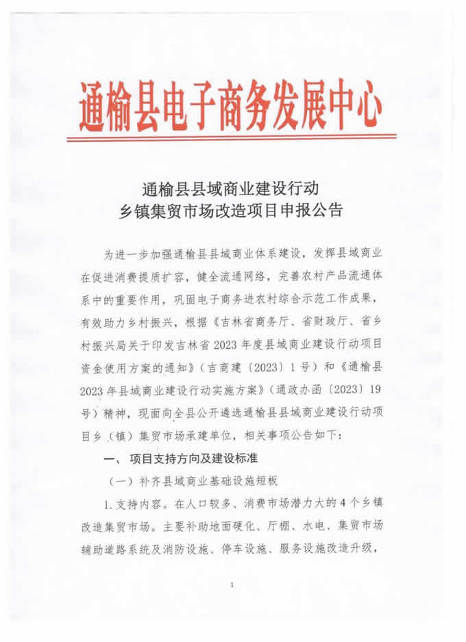 通榆县县域商业建设行动乡镇集贸市场改造项目申报公告