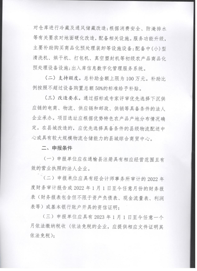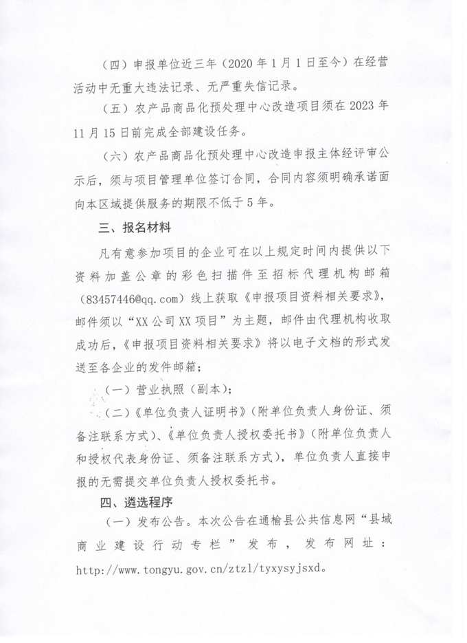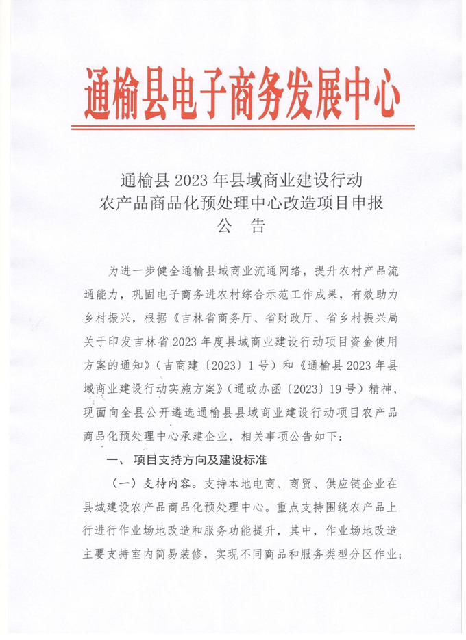 通榆县2023年县域商业建设行动农产品商品化预处理中心改造项目申报公告