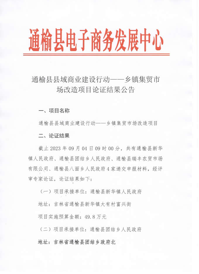 通榆县县域商业建设行动一一乡镇集贸市场改造项目论证结果公告