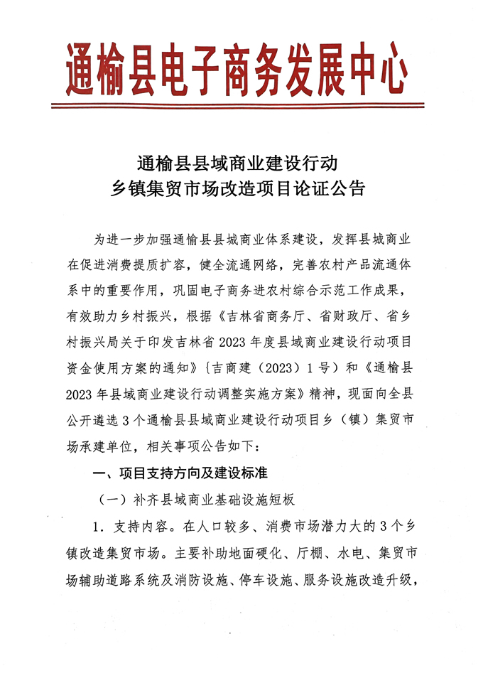 通榆县县域商业建设行动乡镇集贸市场改造项目论证公告
