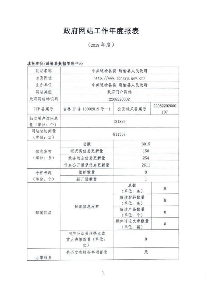 政府网站工作年度报表(2019)